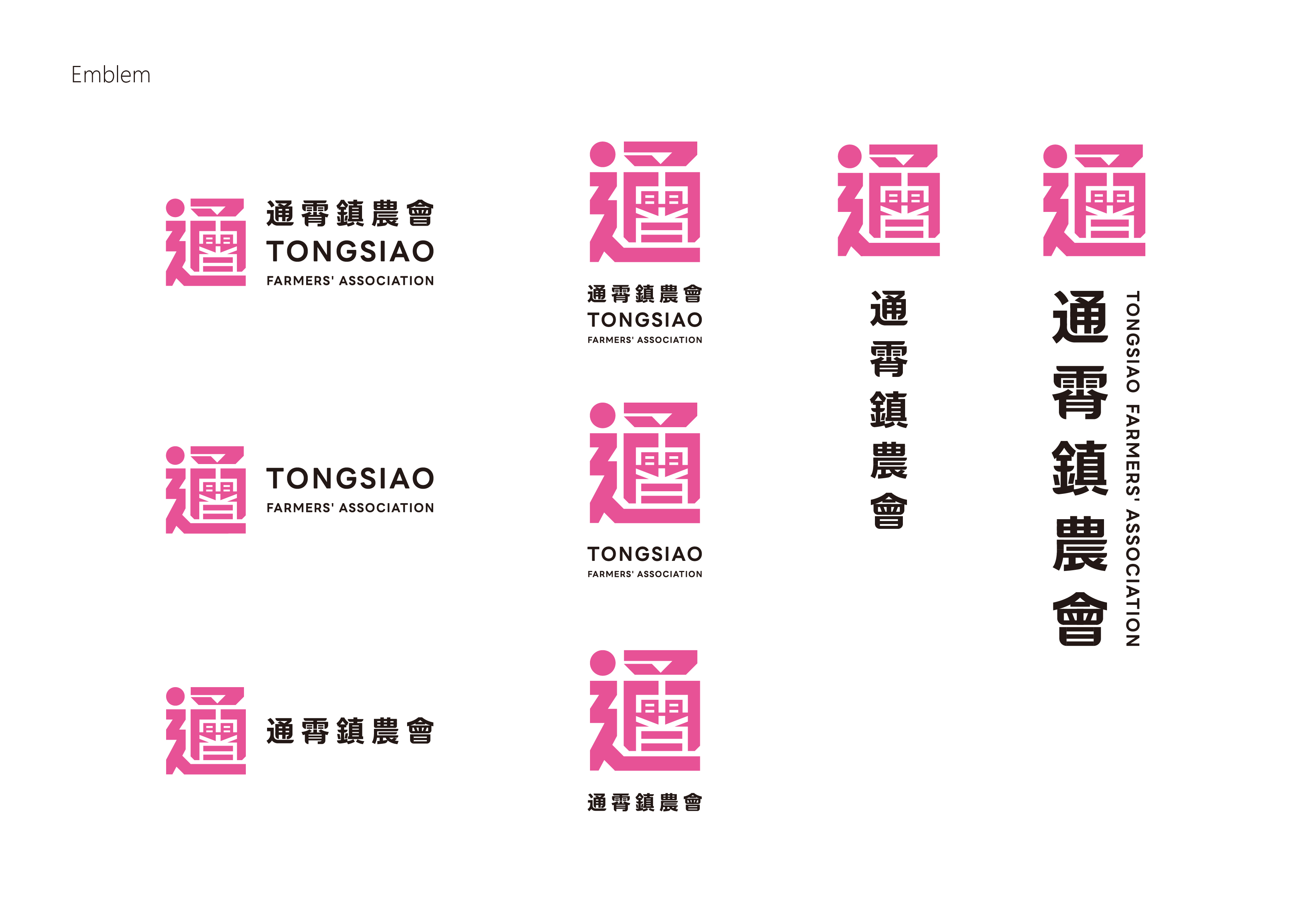 「通霄鎮農會」品牌識別設計,以「通霄」二字為核心出發,透過字形重構與幾何轉譯,將兩字融合為一體式標誌,形成高度識別的品牌符號。
